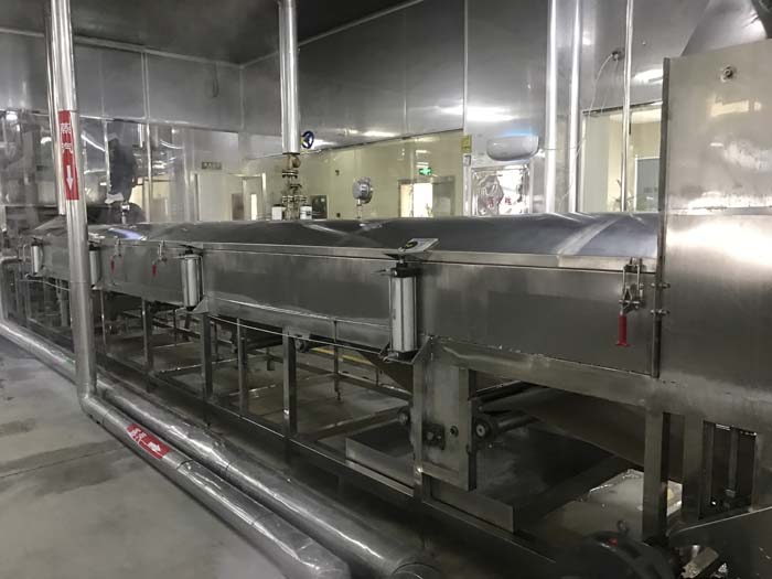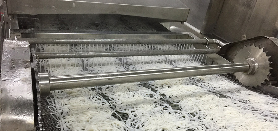 為了延長鮮米粉的保質(zhì)期,包裝好的米粉需要進(jìn)行巴氏滅菌。 通過蒸汽完成最后的殺菌后進(jìn)入到冷卻。